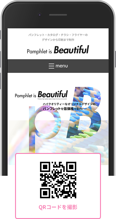 QRコードをスマホのカメラで撮影すると自動的にWEBページにアクセス!パンフレットやDMなどと連携したランディングページに簡単に誘導することができます。
